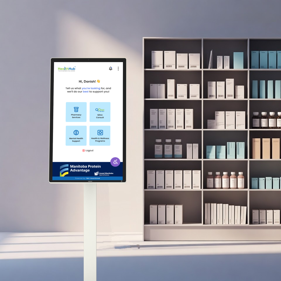 HealthHub™ brings secure, pharmacy-based digital access to the communities that need it most. Patients move through private intake, guided triage, and seamless connection to licensed providers without relying on personal devices. Built for real-world pharmacy operations, HealthHub™ streamlines documentation, reduces workflow strain, and supports meaningful interactions between pharmacists and patients—while expanding equitable access to timely care across Manitoba's healthcare system.